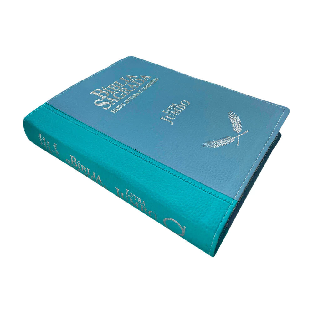 Bíblia ARC Letra Jumbo Com Harpa Avivada e Corinhos - Capa Azul e Azul Claro