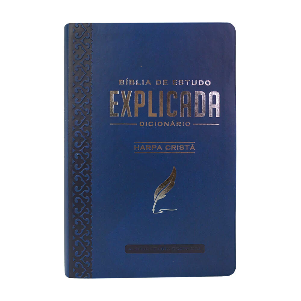 Bíblia De Estudo Explicada Com Harpa Cristã - Capa Luxo Azul