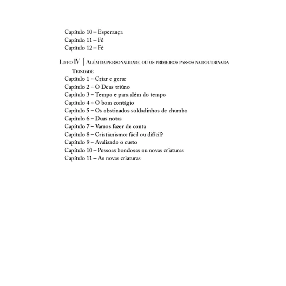 Na obra mais popular e acessível de seu legado, Lewis apresenta os principais elementos da cosmovisão cristã e seus princípios básicos, gradativamente conduzindo o leitor a temas mais profundos e complexos, provocando reflexão e debate. Nesta edição especial da coleção C.S. Lewis, tradução de uma das maiores especialistas em Lewis do Brasil, você vai encontrar as palavras que encorajaram e fortaleceram milhares de ouvintes em tempos de guerra ― e ainda reverberam mais de 70 anos depois.