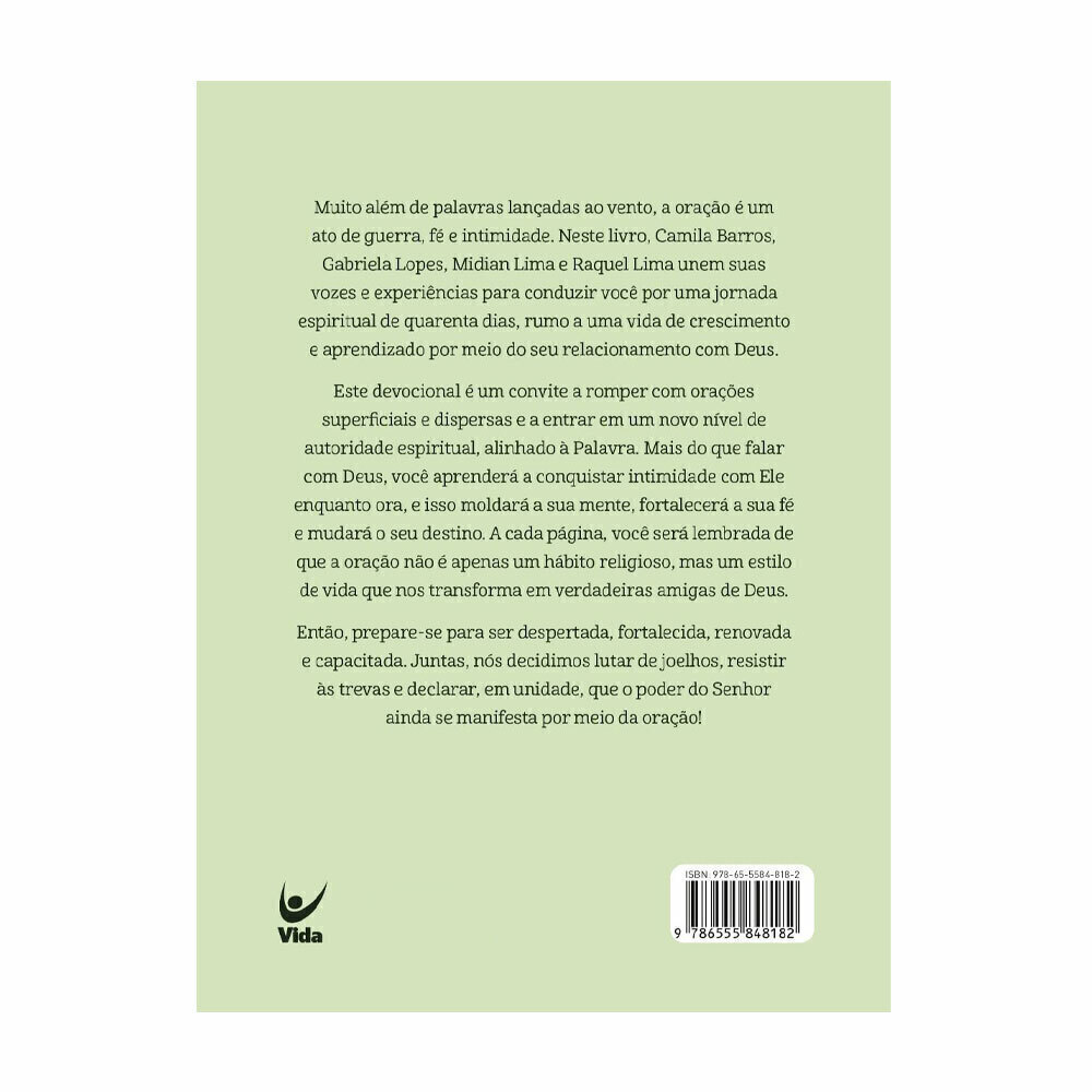 Muito além de palavras lançadas ao vento, a oração é um ato de guerra, fé e intimidade. Neste livro, Camila Barros, Gabriela Lopes, Midian Lima e Raquel Lima unem suas vozes e experiências para conduzir você por uma jornada espiritual de quarenta dias, rumo a uma vida de crescimento e aprendizado por meio do seu relacionamento com Deus.