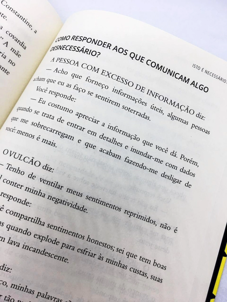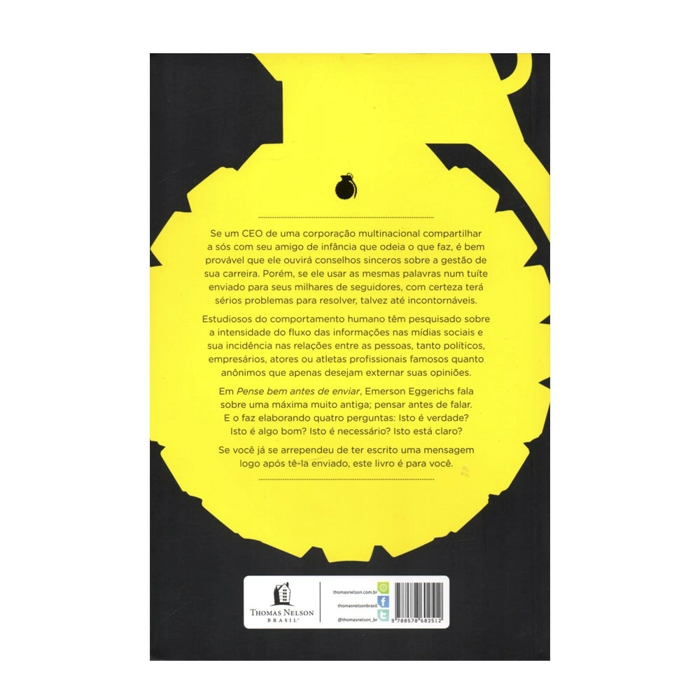 Em Pense bem antes de enviar, Emerson Eggerichs fala sobre uma máxima muito antiga; pensar antes de falar. E o faz elaborando quatro perguntas: Isto é verdade? Isto é algo bom? Isto é necessário? Isto está claro?